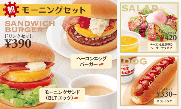 201303.28 モーニングサンド2種新発売! モーニングサンド(BLTエッグ) ベーコン・たまご・レタス・トマトをバンズに挟んだ、バランスの良い定番のBLTサンドです。 単品:290円 ドリンクセット:390円 ハッシュセット:440円 モーニングサンド(チキン&チーズ) 蒸し鶏とチーズに、トマトとレタスを合わせてバンズに挟んだヘルシーでバランスの良いサンドです。 単品:290円 ドリンクセット:390円 ハッシュセット:440円 フランチャイズ加盟店オーナー募集!... コーヒー回数券キャンペーンはじまる!...