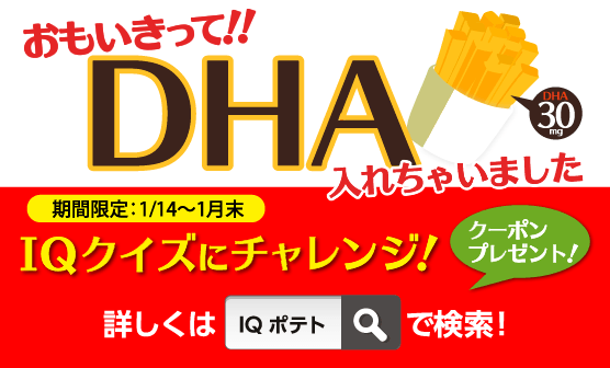 ☆レベル1IQクイズに正解すると・・・お好きなポテト(M)半額クーポン