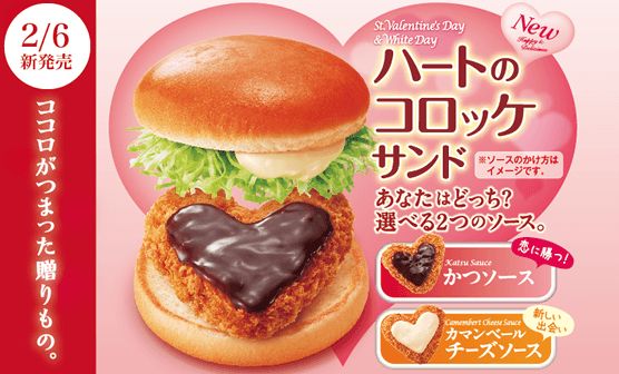 ○『ハートのコロッケサンド(かつソース)(カマンベールチーズソース)』