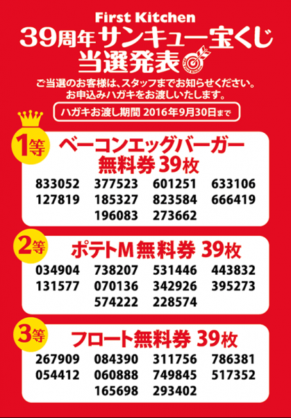 201608.31 「39周年サンキュー宝くじ」当選発表!